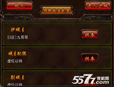占领行会的会长可以在沙城争霸面板领取城主专属武器