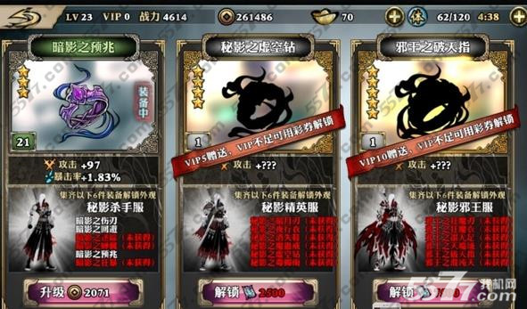 主要是解锁游戏中高级套装,这样我们就可以提高自身的战斗力了。相信很多玩家应该知道,影之刃想要更换装备视需要VIP特权的,不过我们也可以使用彩卷来解锁这些装备。