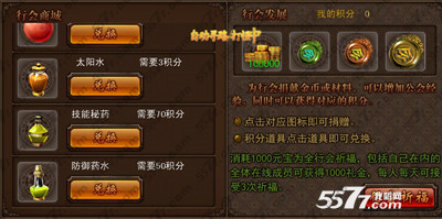 参加行会,在行会福利栏目中有各种药水兑换,玩家可以用行会积分兑换技能秘药,1瓶技能秘药=70行会积分