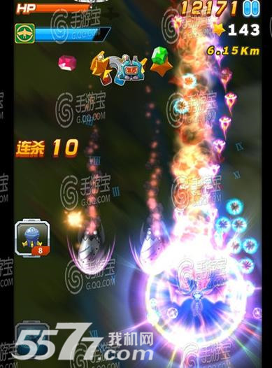 炫光电轮:发射6枚炫光电轮和大量小型电轮,摧毁所有敌机、子弹、导弹分别对BOSS或首领造成55440伤害及4746伤害,300秒冷却。