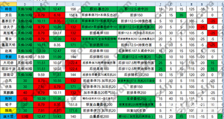 红色为较差属性:
