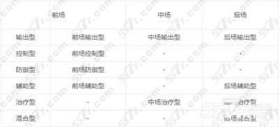 2个纬度整合起来,大概就有这么多定位类型,去掉一些不存在的,如前场治疗型,以下表格应该包括了所有类型: