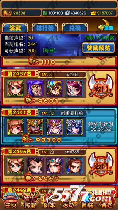 3、挑战比自己排名高的,胜利获得20点声望,失败获得10点。挑战比自己排名低的胜利获得10点,失败获得5点。