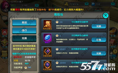 4.每天晚上10点会发放竞技场奖励,玩家也可以使用声望进行装备和神符的兑换!