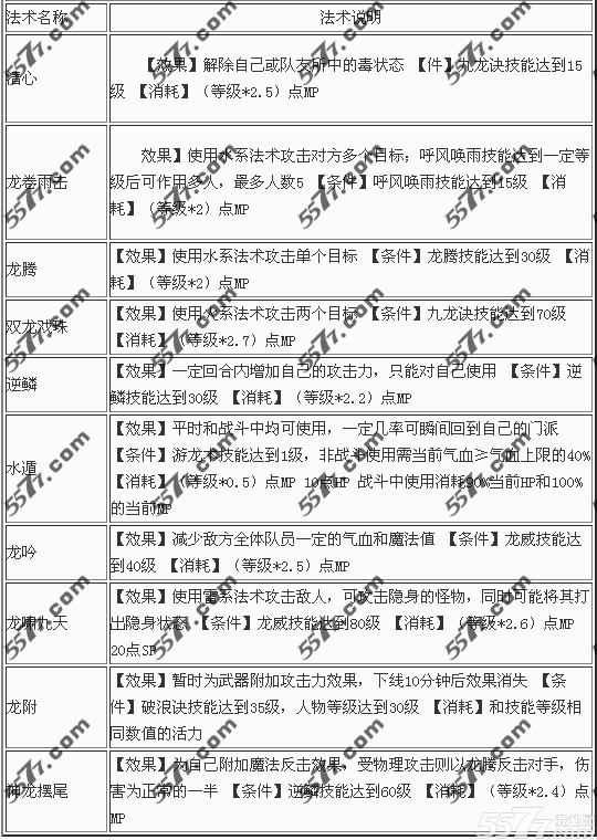 神武手游龙宫技能: