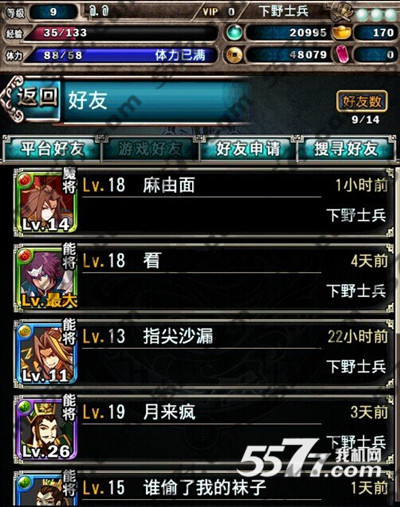 平台好友指仅限于相同平台的好友,比如玩家在中国手游平台下载的,在这一栏显示的好友也就是中国手游平台的伙伴们,这里的好友不管是否在玩猛击三国,只要在与玩家相同的平台玩耍任意游戏,都将会显示。