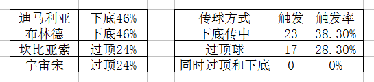 2个46%的下底传中,概率也仅仅比2个24%的过顶球高一点。