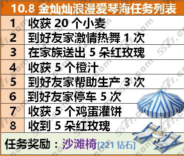 任务一共有8个小任务,完成这8个任务之后,玩家才可以获得沙滩椅。