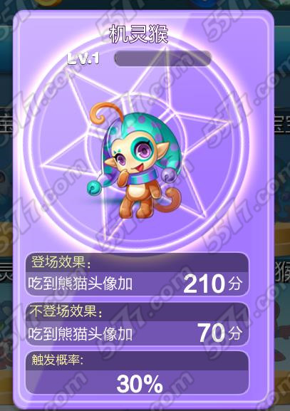 而机灵猴的技能是吃到熊猫头像加分,在经典模式中,熊猫的头像相对是会比较多,所以小编建议带上机灵猴。但是加到的分数就不如蓝羽灵雀那么高了。