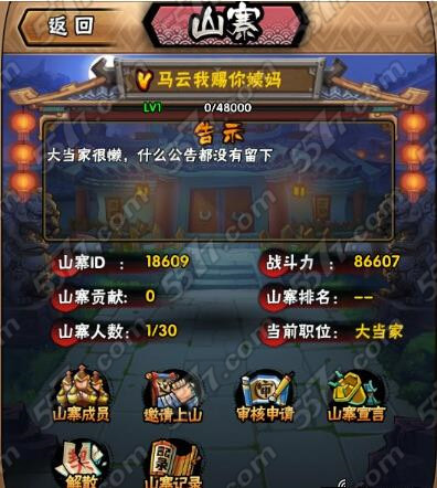 山寨大厅是山寨最核心的地方,了解山寨信息、查看成员信息和对山寨进行管理都是在山寨大厅里进行。