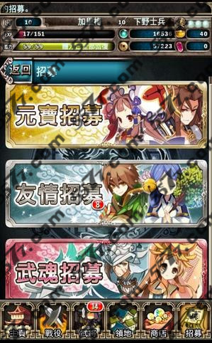 4. 元宝招募:使用元宝进行招募,元宝可以在游戏内通过登入、通关、评级等奖励获得。
