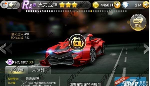 这是一款S级的车辆,红色的车辆造型,其三围属性图鉴是目前最好的一款车辆,而该这辆赛车预计是双技能,让你刷分刷金币更简单哦。在S车辆中,该车辆值得你入手哦!