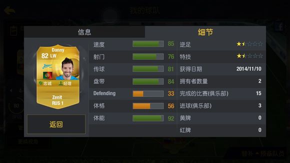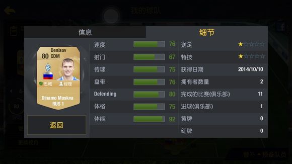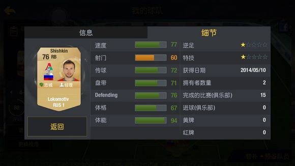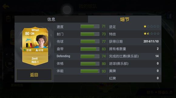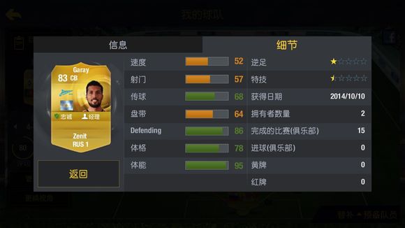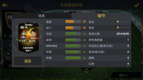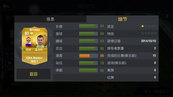 相比14,数据降了好多,唉,但也是个后防大闸,可是俄超cb那速度,中场再选几个慢的,曼联阿森纳分分钟玩死你