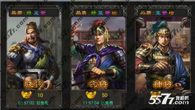 在游戏中会有一些活动以及任务完成这些就可以获得免费赠送的一些武将