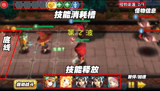 技能释放:当技能消耗槽中拥有角色释放技能所需的技能珠时,我们就可以点击角色头像释放技能,要注意有些角色的技能有范围限制,例如小红帽的技能是向前冲锋一段距离,如果这时其面前没有敌人的话,就会白白浪费一次技能了哦。