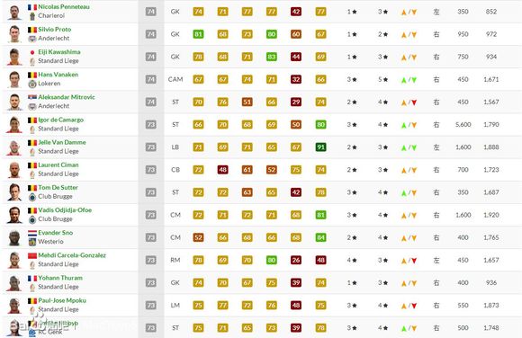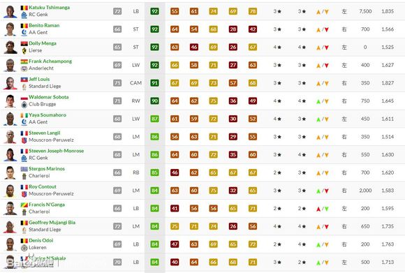 接下来我们来到比利时联赛,作为大家心里的小红人,渣渣啊,孔帕尼啊,裤袜啊,让大家认识了比利时,银卡数量和素质还算不错。