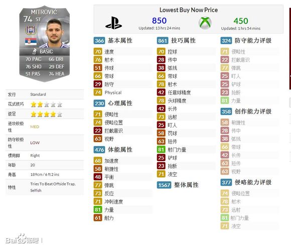 可惜的是MENGA这位前锋我木有在市场上找到。这次我们测试的一共8位选手。老规矩从数值最高的开始