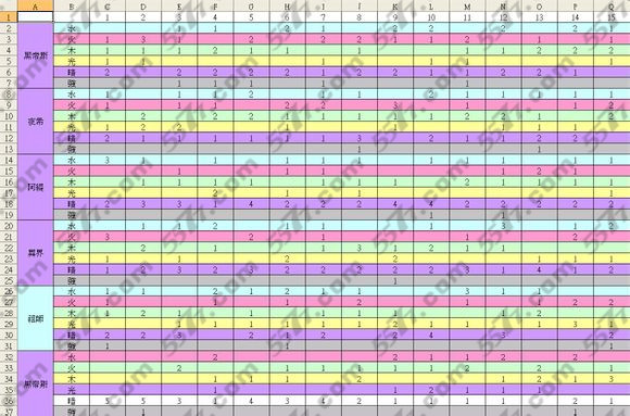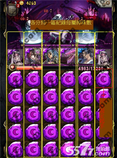 1、利用小怪无限重生洗CD,炸整版后於新盘面落下且未消珠前拍照,炸100组之后纪录各成员下方之各属掉落珠数