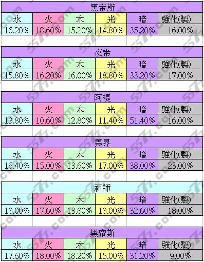 (二)其中最高可看出是为阿缇的51.4%,其次为异界龙的38%,其余平均在33.05%(约略为理论值心16.6%+暗16.6%=33.2%)