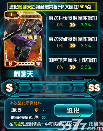 4、进化值:卡牌进化以后会提升人物的成长值、突破值和培养上限,同时S卡会对8大属性额外附加一定数值,这个附加值得计算方法就是本次主要内容之一。