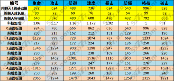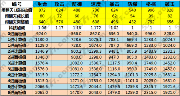 根据该公式,我们就可以模拟出闹翻天每次进化以后的数值了