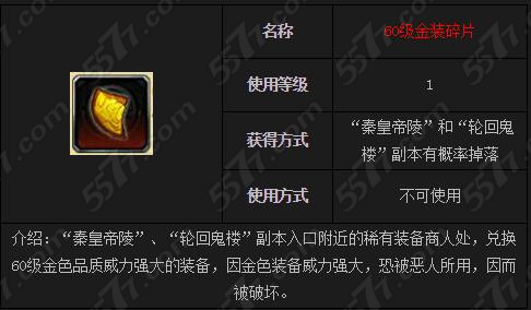 介绍:“秦皇帝陵”、“轮回鬼楼”副本入口附近的稀有装备商人处,兑换60级金色品质威力强大的装备,因金色装备威力强大,恐被恶人所用,因而被破坏。