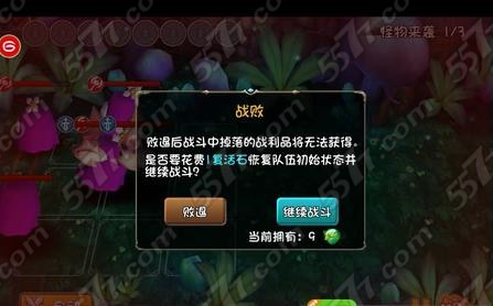 玩家在闯关过程中,全军覆没时,就可以使用复活石了。使用之后将恢复队伍初始状态,也就是满血复活,然后继续战斗。