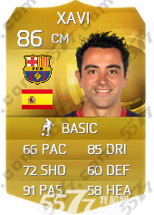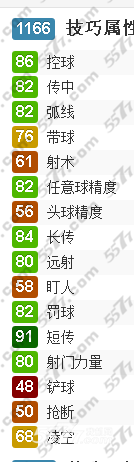 哈维 虽然上赛季表现不佳 但还是拿到了86的总评 比起上面两位 他的射门是差了些 哈维最大的特长就是传球了 传中85 长传90 短传95 视野94 多么变态的传球能力 另外控球方面也达到了 93