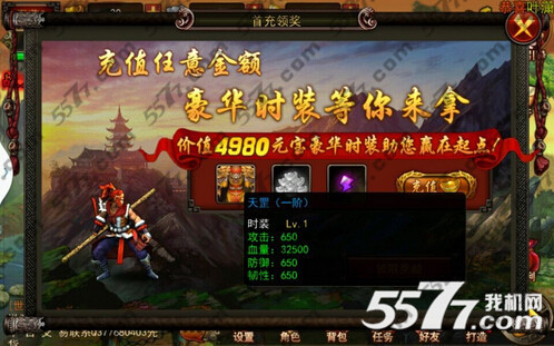 4、通过活动获取,目前官方有首充奖励天罡时装活动。玩家充值任意金额就可以获得天罡时装以及50万银两等精美奖励!