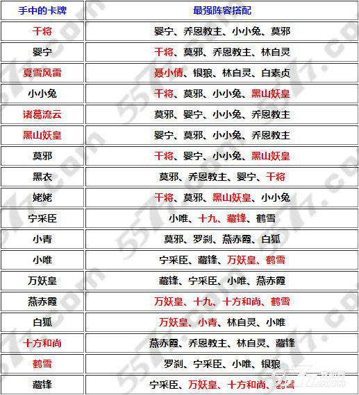 由于大家手中拥有的卡牌都是不一样的,因此小编就按照每个卡牌所对应的阵容组合为大家呈现~注意啦,红色字体的代表该卡牌有队长技能哦!