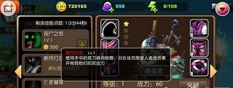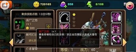 技能一:丧尸之怒,牺牲暴食者当前生命上限15%的生命,对指定范围内目标造成大量伤害。当生命不足时,将会扣减生命至1点。