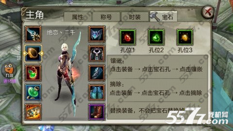 其次,宝石系统与装备系统是相互独立的,即就算对应位置没有相应的装备你也可打上宝石并激发宝石的属性,而且换装不影响宝石的属性,另外宝石可随时拆取、随时镶嵌,仅收取少量的金币费用。