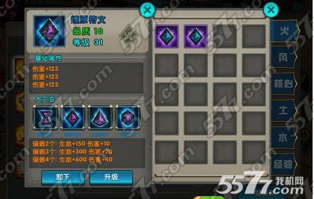 符文升级优先升级伤害类型符文,在后期推图过程中会发现血量足够,但是战力不够,推图时间超时的情况,所以玩家需要优先提升伤害类型的符文来提升伤害。