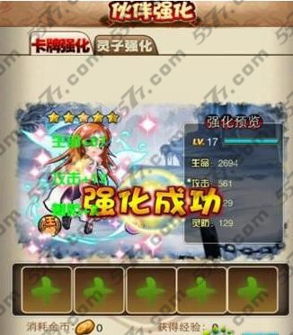 主角刚开始是蓝卡,处于中等战力水平,不过通过刷副本、PVP以及界限突破等获取进阶的材料,均可帮助主角进阶为五星级别紫色卡牌。而游戏中的其余伙伴则通过普通卡牌融合获取经验升级,领子强化和王牌好感度来提升属性。