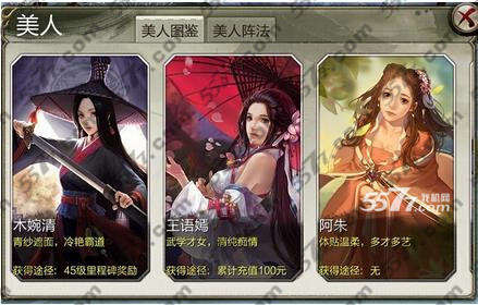 美人阵法,开启美人阵法至少需要五个美人,一般阵法都需要六个美人,加成为属性百分比加成。当五个美人统一由白色升阶到绿色之后,会提高加成百分比。