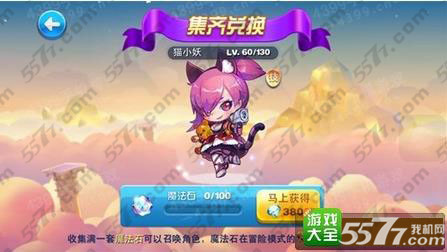使用魔法石我们可以兑换需要积分兑换的角色、如猫小妖、小魔女、魔女娜娜、审判女王、金枪小帅等角色都可以兑换。