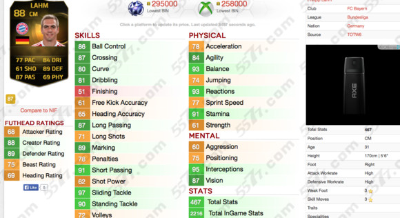 他的亮点是速度86,逆足5!!!短传和视野一般。