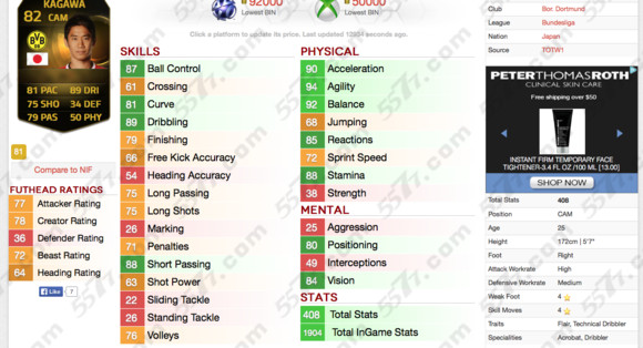 短传88视野84速度81,逆足4.这些看起来不错。但是力量太差了只有38,球场上体现的是一碰就倒了,影响很多机会。
