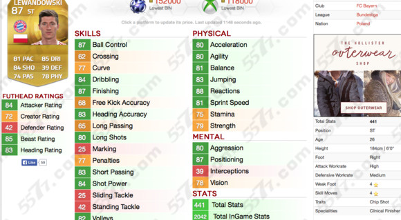 德甲第一前锋。速度81力量79头球83跑位87射术87,逆足4,综合能力很强,有速度有力量和头球,类似于神锋科斯塔。但他的传球比科斯塔更好。 WORKRATE: H/M 野兽数值85. 如果硬要说弱点的话,速度再快点就更好了。