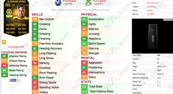 AUBAMEYANG绝对是主力中的主力。以后的价格必定会很高,个人预计会突破30W至少。因为德甲能代替他的ST是在太少了。野兽数值90.WORKRATE: M/L