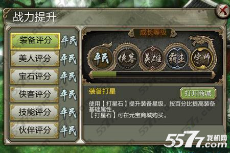 小编再来科普下,战斗力提升主要包括:装备、美人、宝石、侠客、技能、伙伴这六面~只要这六方面都提升了,战斗力级别自然就提升啦!