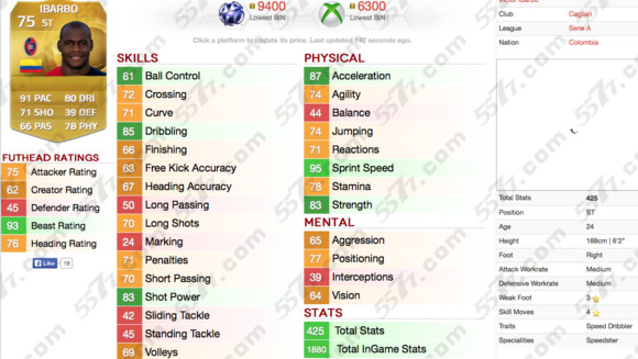 是的,他又回来了!IBARBO的野兽数值达到93这么高的评价不是没有道理的。他的速度,力量,比黑特维斯有过之而无不及,可惜射术次了点只有66,逆足3. 伊巴尔博靠速度和力量还有身高位列意甲锋线第二,毫无争议,甚至有人觉得他比特维斯更好用,我觉得绝对并不为过。真的很好用。谁用谁知道啊。