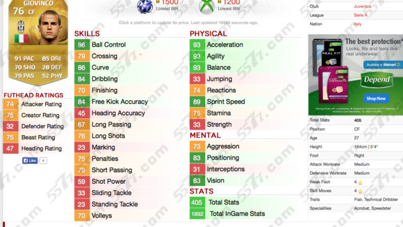 GIOVINCO很好用,除了力量33太弱以外,技巧速度都不错,逆足4是他比前几位射手的优点。他有时候也出现在CAM的位置,也可做CF和ST。穆雷和苏也和GIOVINCO一样,都是fifa14以来就很受欢迎的卡,15中数据略有下降,但是实用性还是很高的。