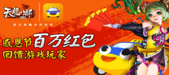 天龙八部3d手游和滴滴打车合作,在感恩节到来之际推出了百万红包。许多玩家都比较想知道怎么领取到天龙八部3d滴滴打车红包,下面小编来分享下天龙八部3d滴滴打车红包领取方法,希望大家喜欢。