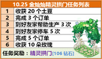 全民小镇10月25日增加金灿灿精灵拱门任务,那么玩家要怎么完成这个任务呢?任务列表有哪些?下面小编就为大家介绍一下全民小镇金灿灿精灵拱门任务攻略。