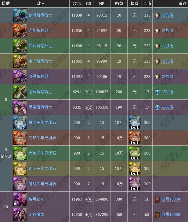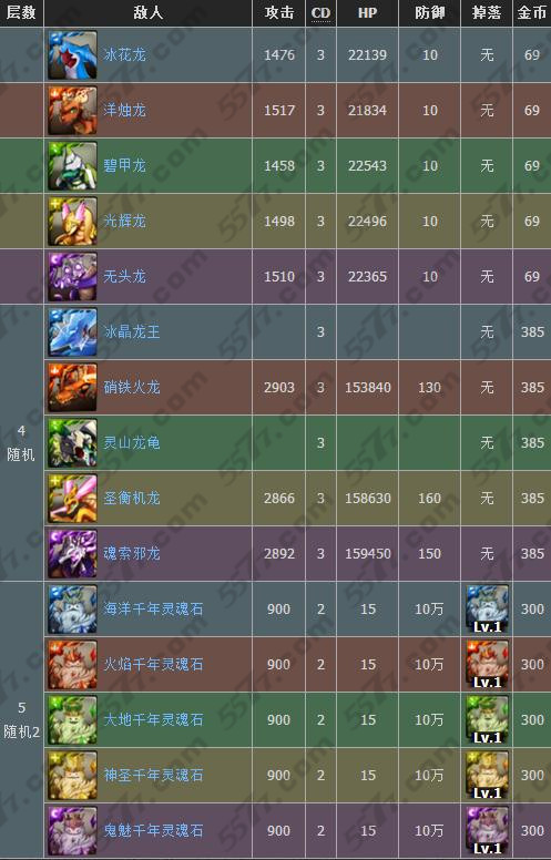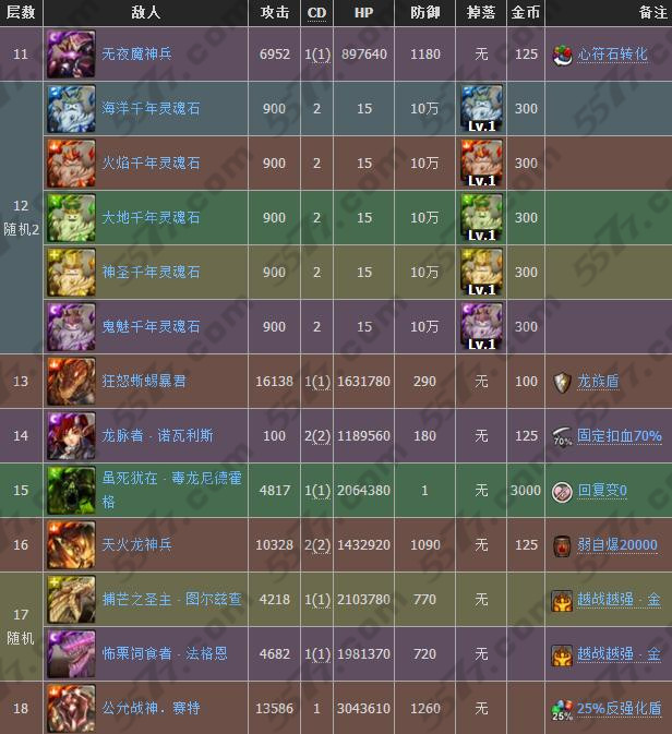 随便看看就好了...13关磨死,14关有足够暗珠就可以开水龙使带走,15关随便,16关随便,17关怕手残的话可以磨掉大概2/5,有足够暗珠再开水龙使带走,18关,自己看着办,转心龙别随便乱开,比较考验计算能力。。。用这队打不过的话不要怪我。。。