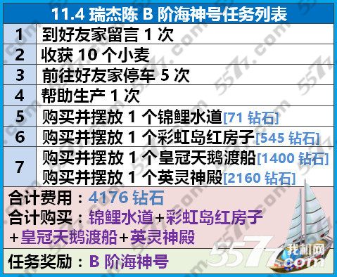 全民小镇11月4日杰瑞陈B阶海神号任务列表: