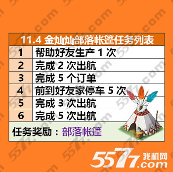 全民小镇11月4日金灿灿部落帐篷任务列表攻略: