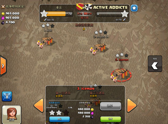 上一张上次部落战的资源图,双96.5w,哇哈哈!