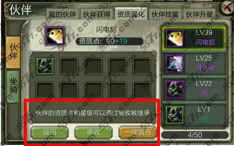 资质点可以吸取任意颜色的宠物资质点数,这里的点数是无限的,只要你有足够多的垃圾宠物都可以吸掉。白,绿,蓝,紫,橙,很普遍的品质等级划分,颜色越高的获取到资质点越多。